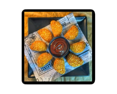 Los bocaditos fritos rellenos de pulled pork son crujientes por fuera y jugosos por dentro, con tiernas hebras de cerdo desmenuzado ahumado que se derriten en la boca. Acompañados de salsa BBQ dulce y ahumada, ofrecen un contraste perfecto de texturas y sabores intensos.